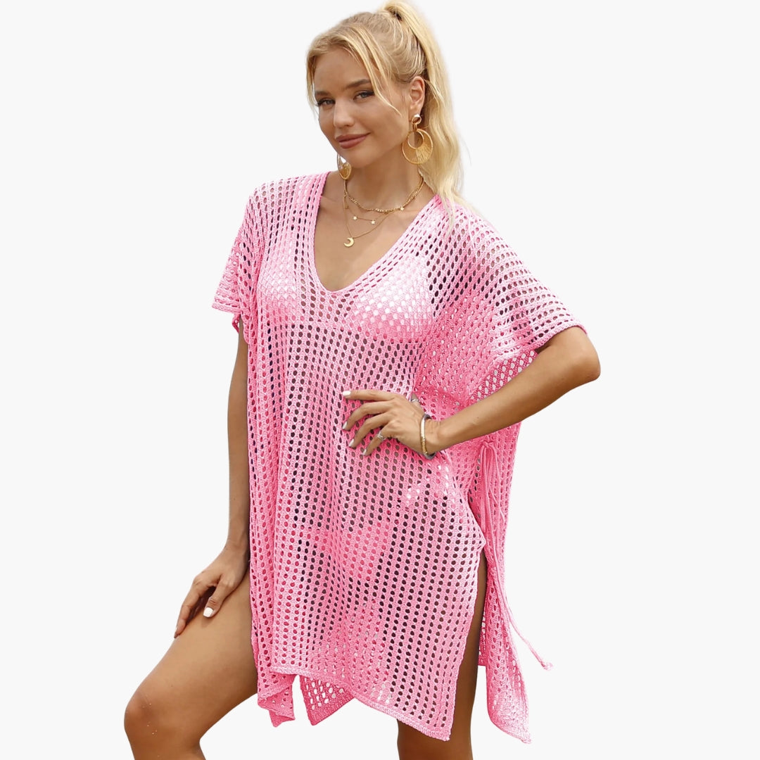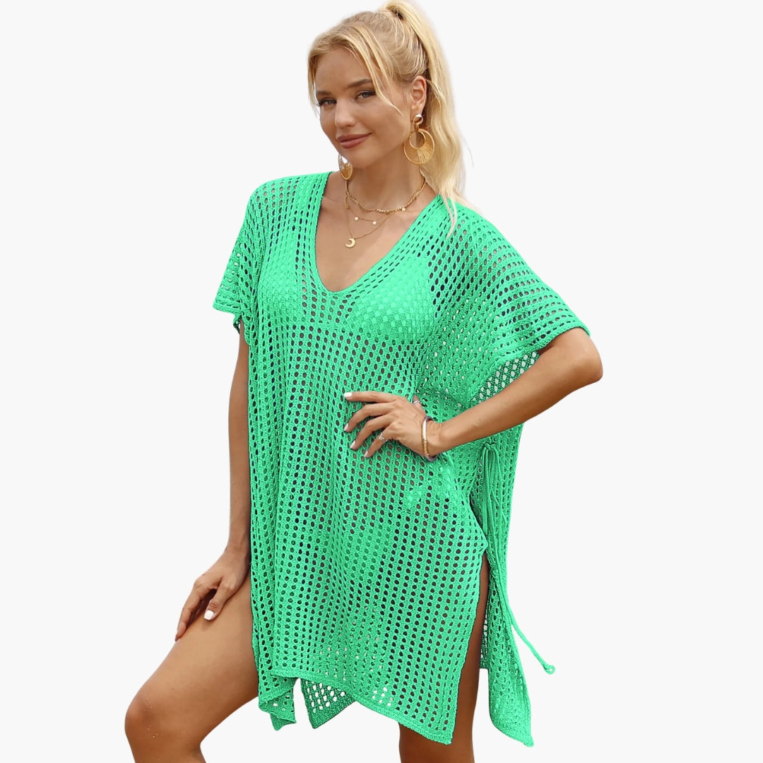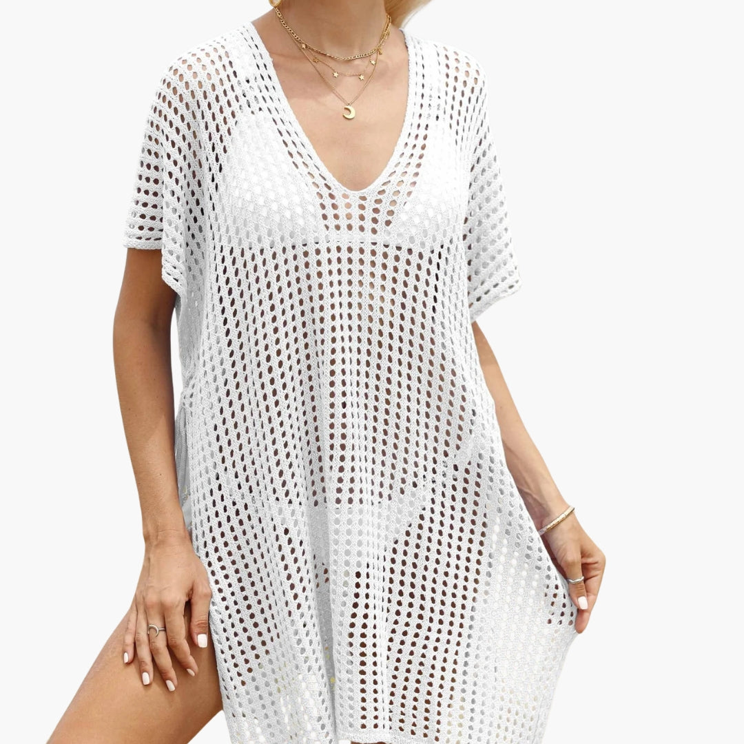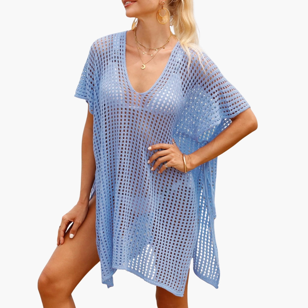 Beach blouse designed with a V neckline and long sleeves