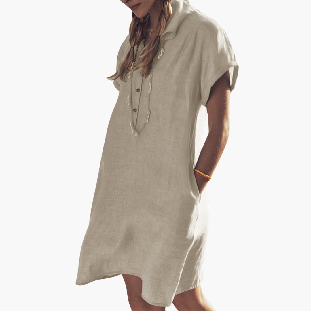 Women’s Beach Dress with Collar and Button Front