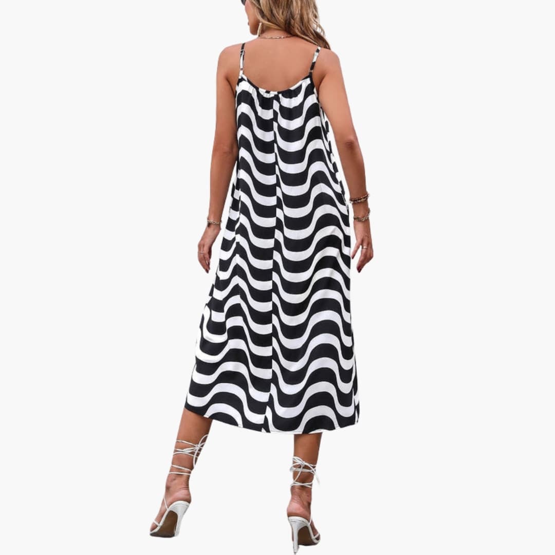Women’s Beach Dress with Spaghetti Straps and Wave Pattern