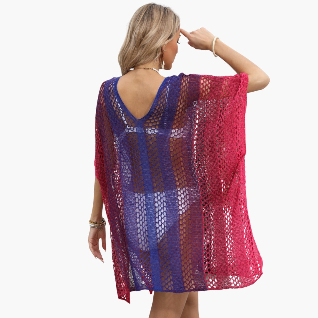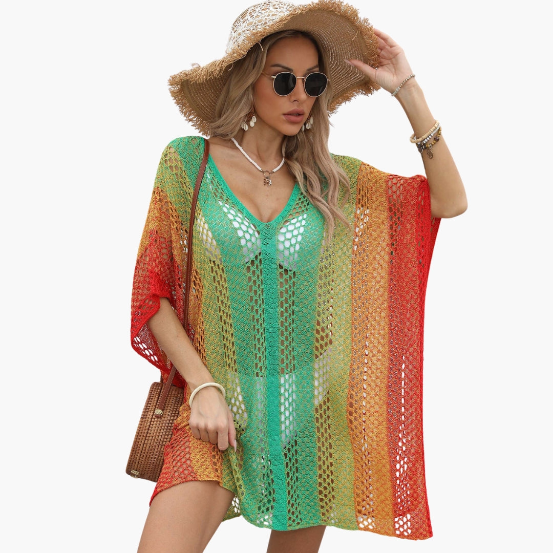 Women’s Beach Dress with V Neck and Open Knit Surface