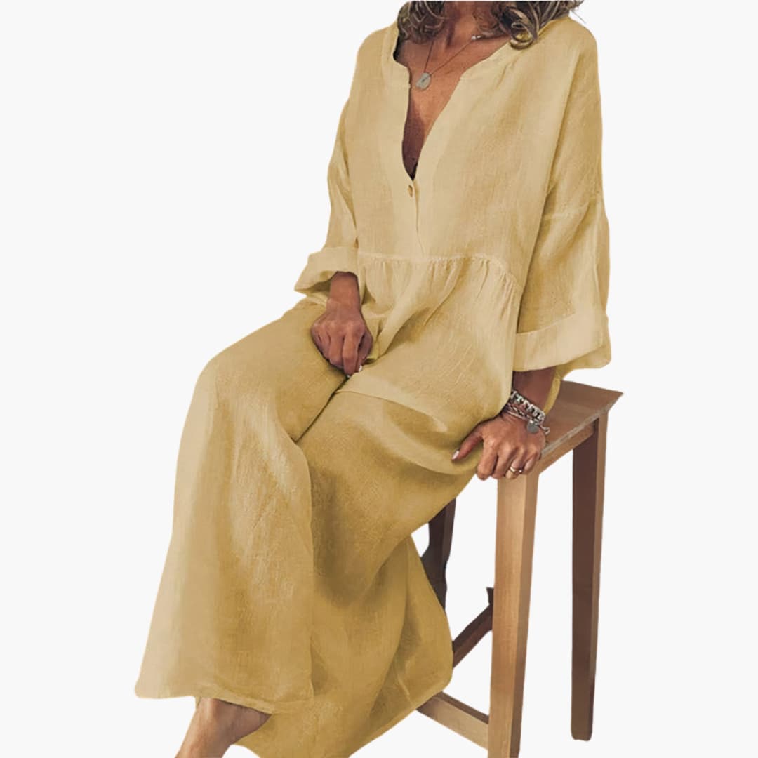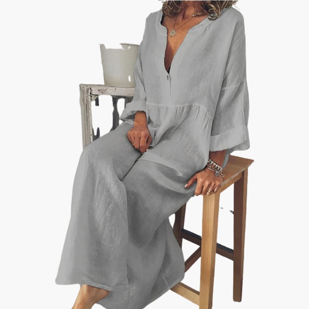 Women’s Button - Front Blouse Dress with Long Sleeves