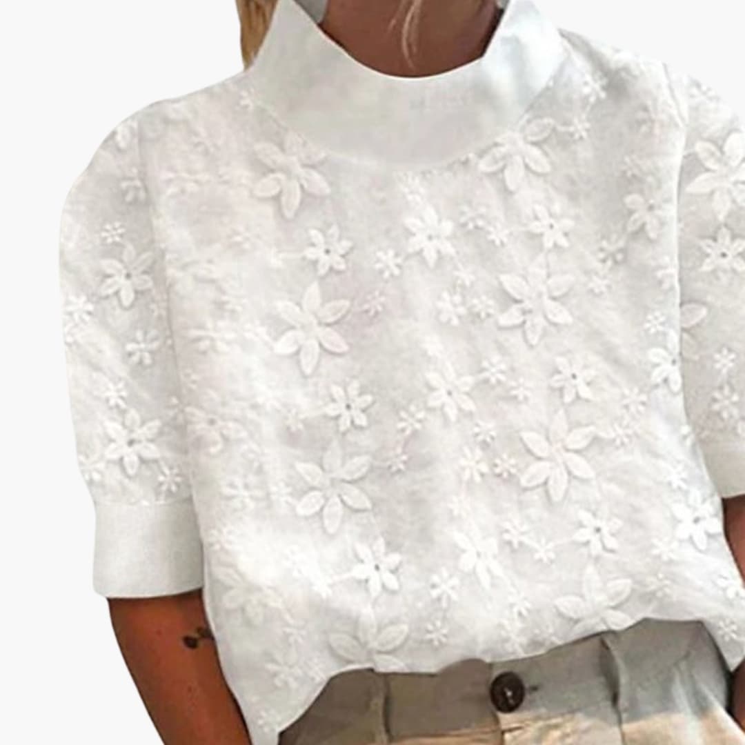 Women’s Embroidered Blouse with Stand Collar and Long Sleeves