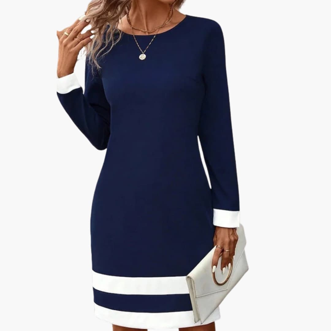 Women’s Long Sleeve Dress with Round Neck and Contrast Cuffs