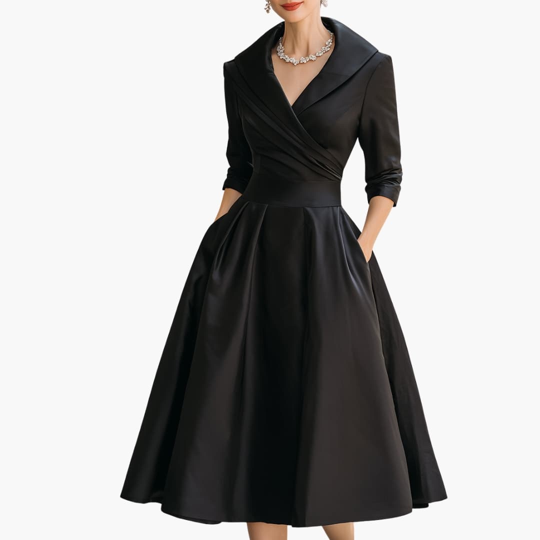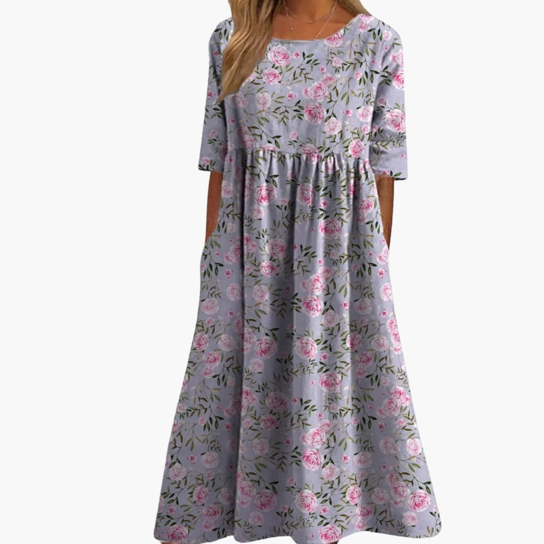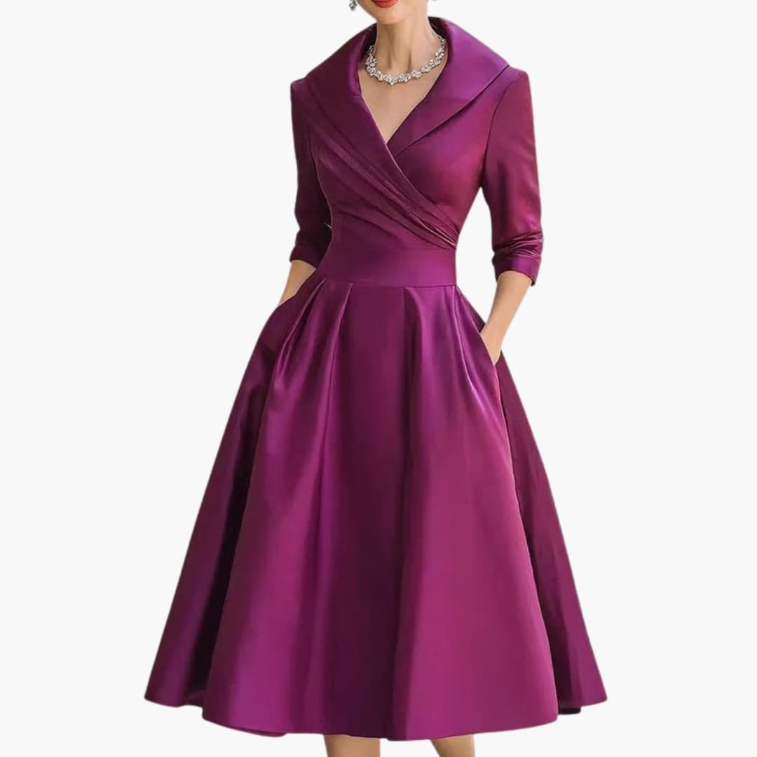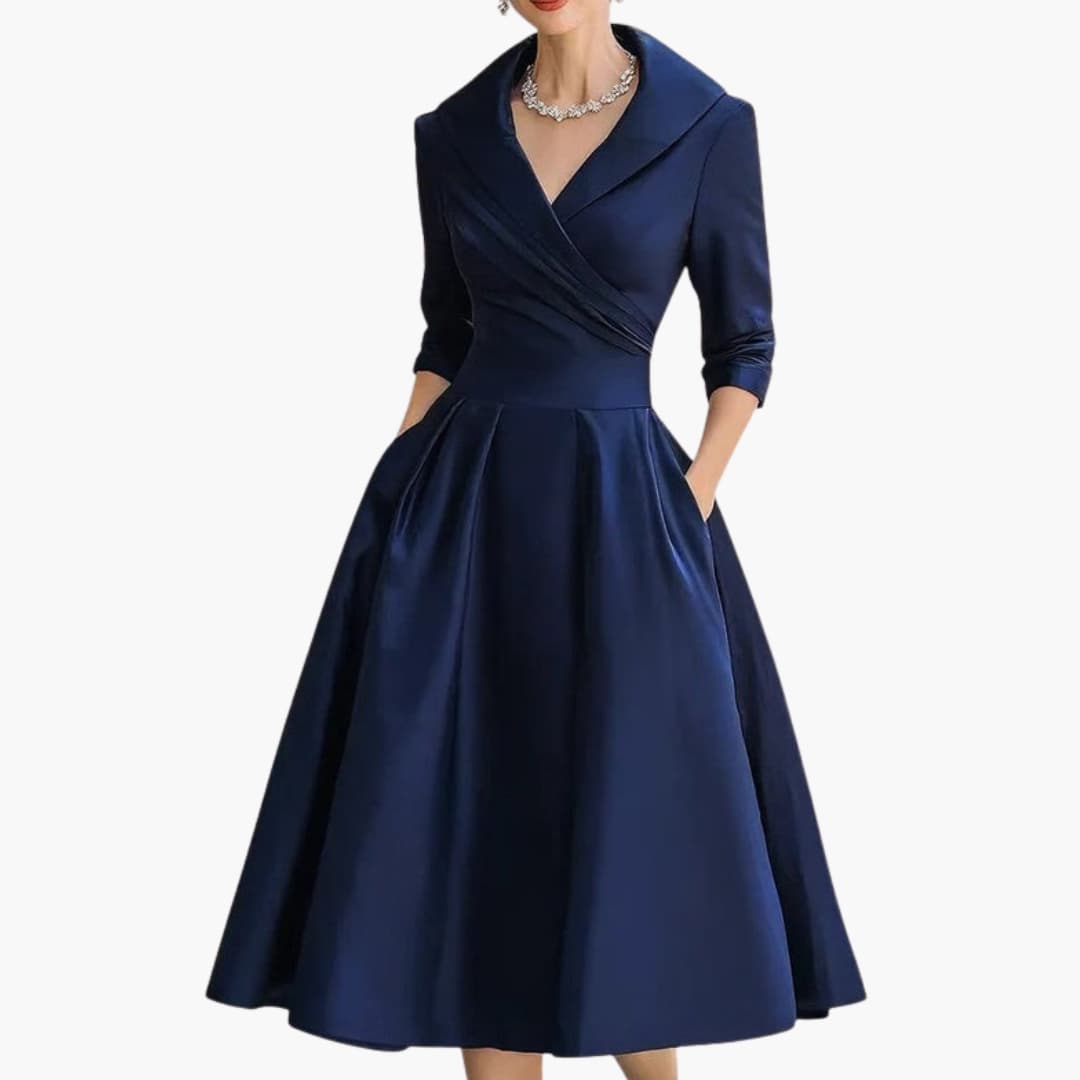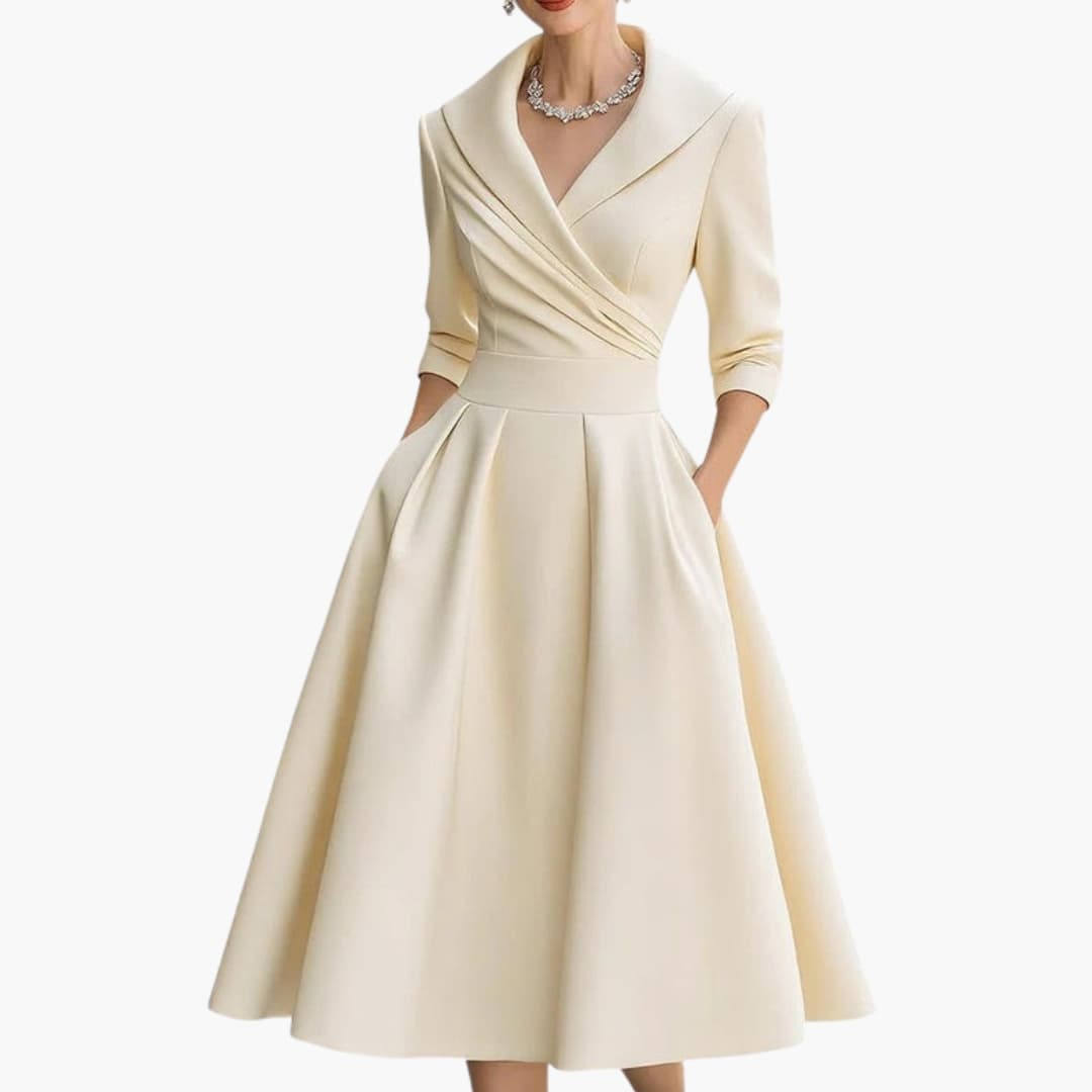 Women’s Midi Dress with Fitted Bodice and Side Pockets