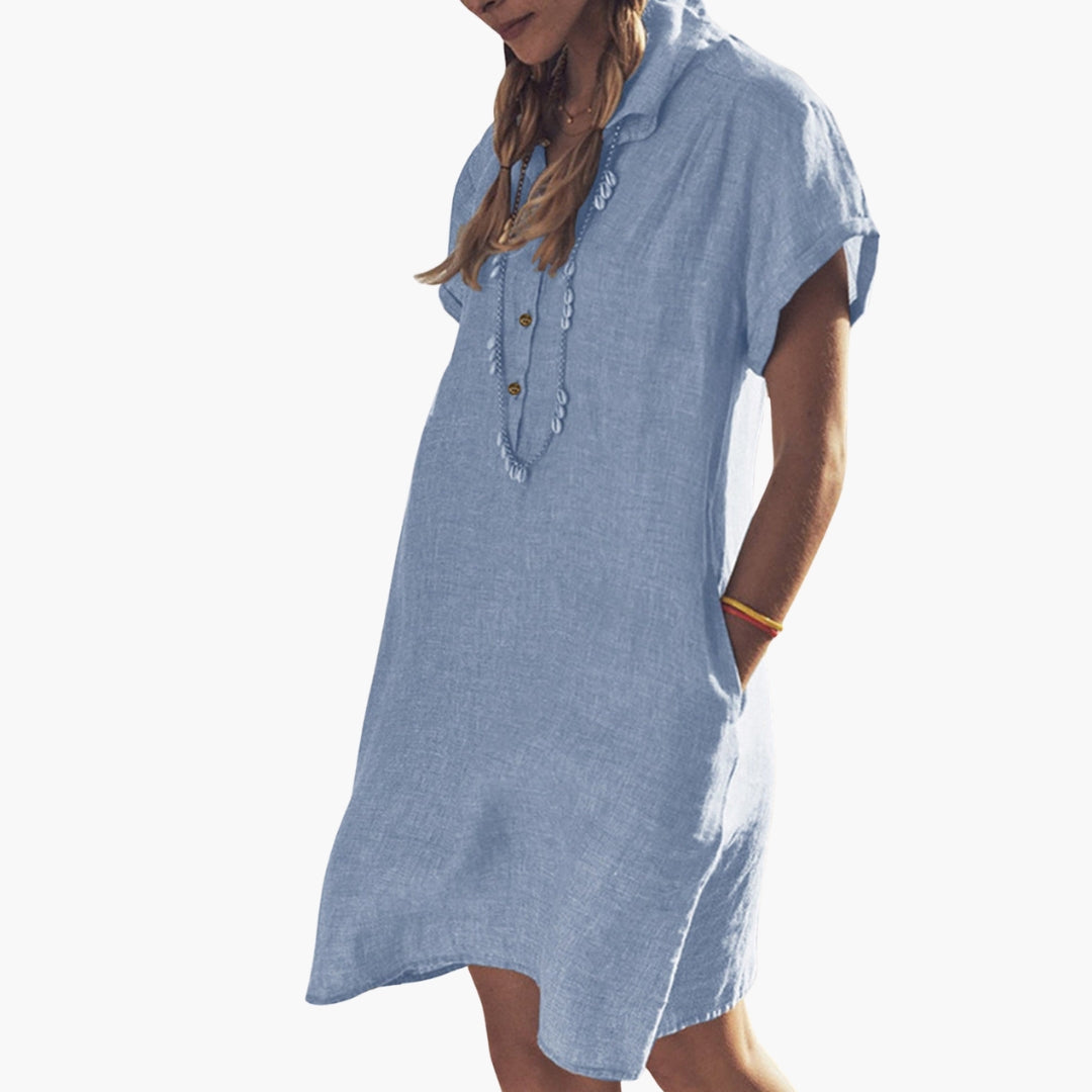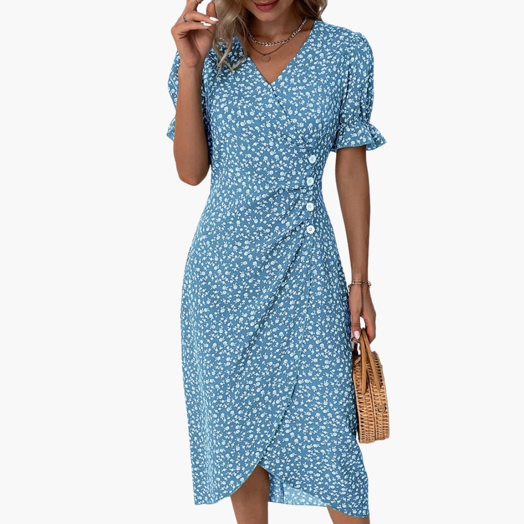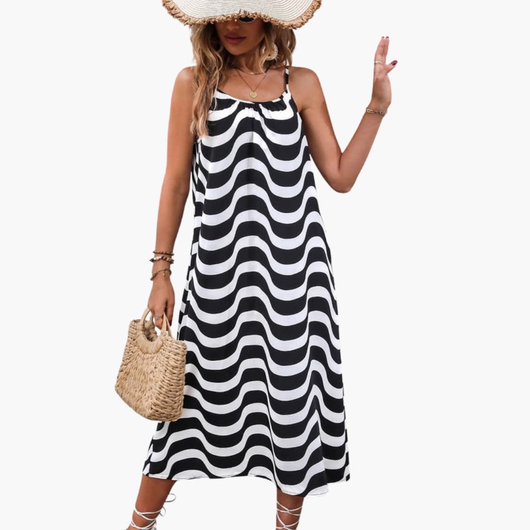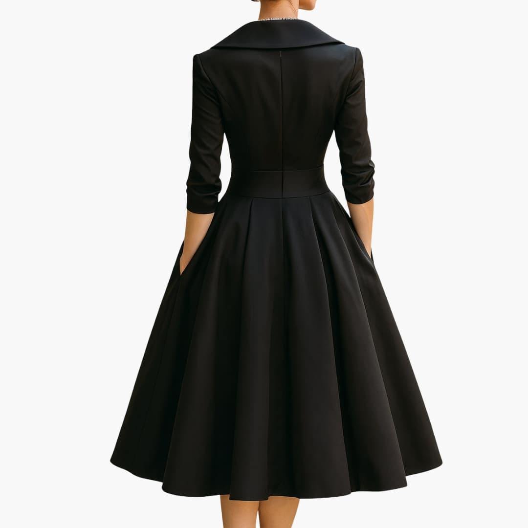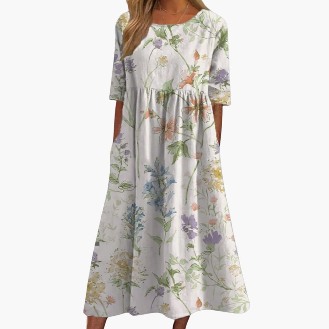 Women’s Midi Dress with Fitted Bodice and Side Pockets