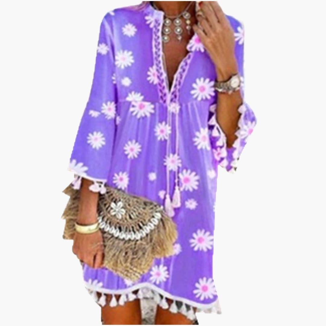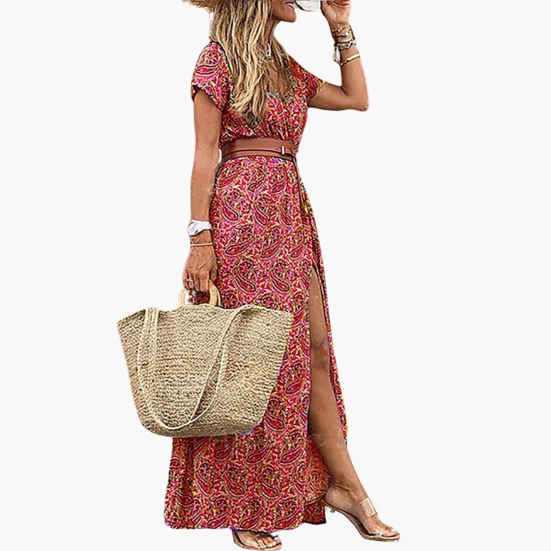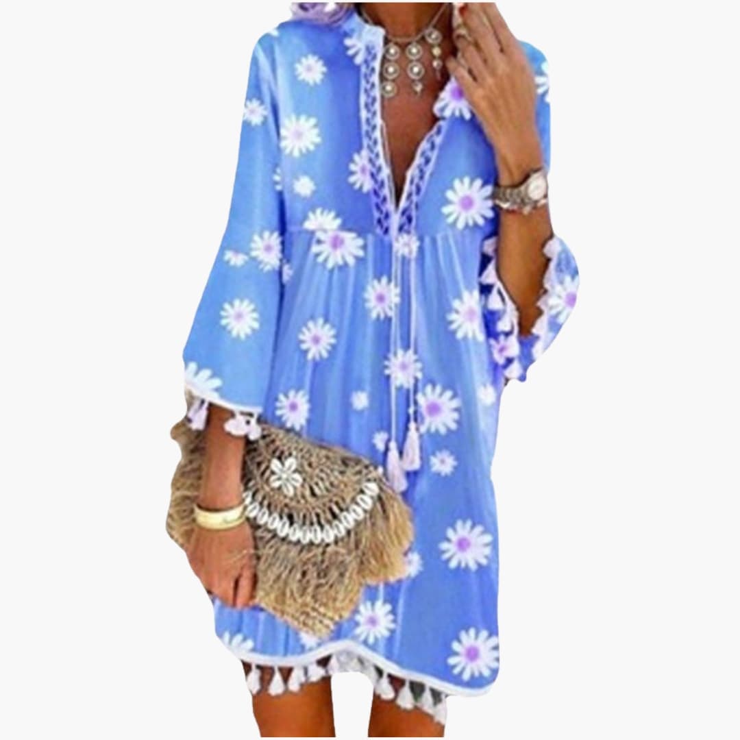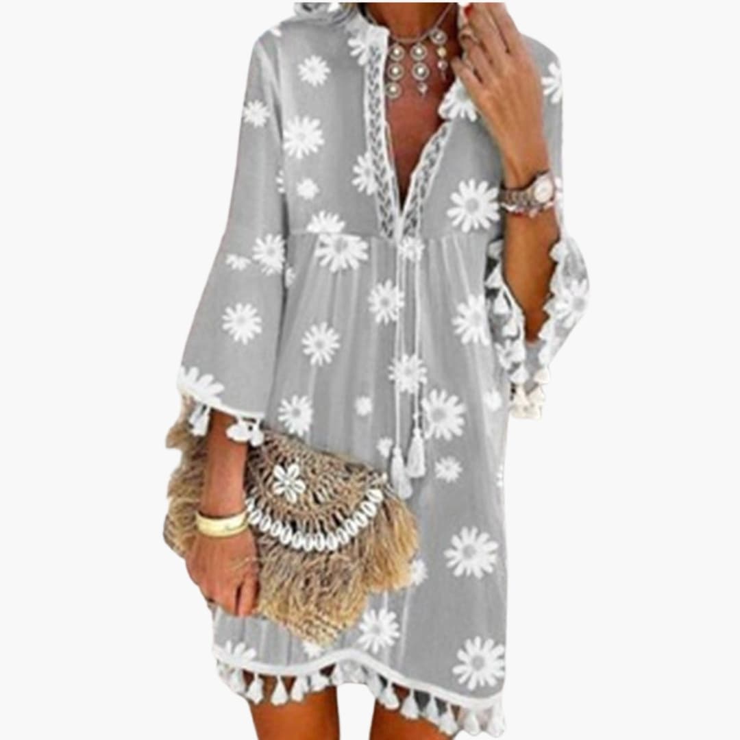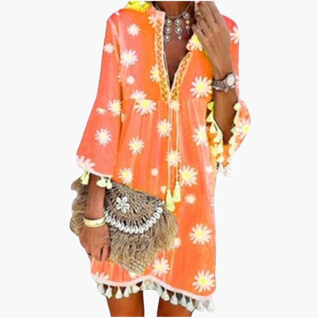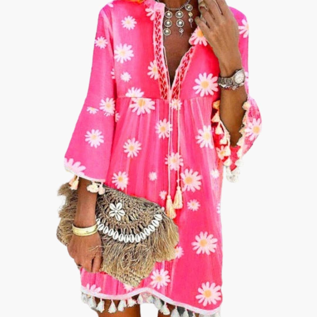 Women’s Midi Dress with Fitted Bodice and Side Pockets