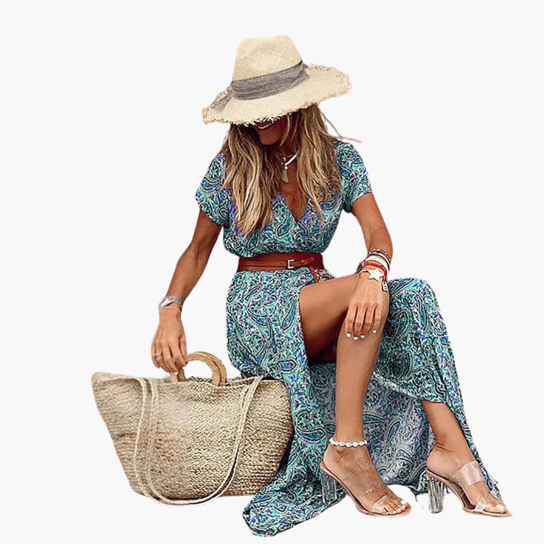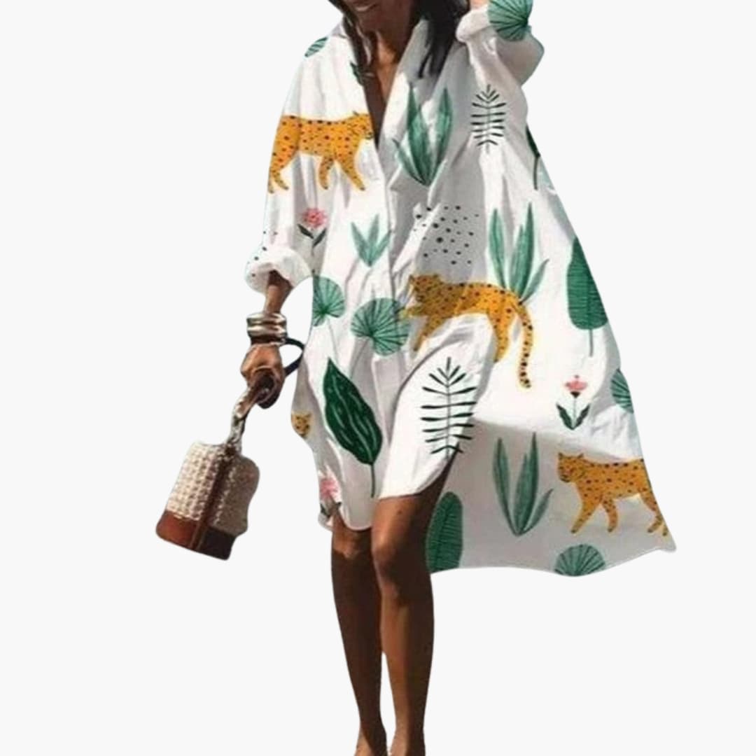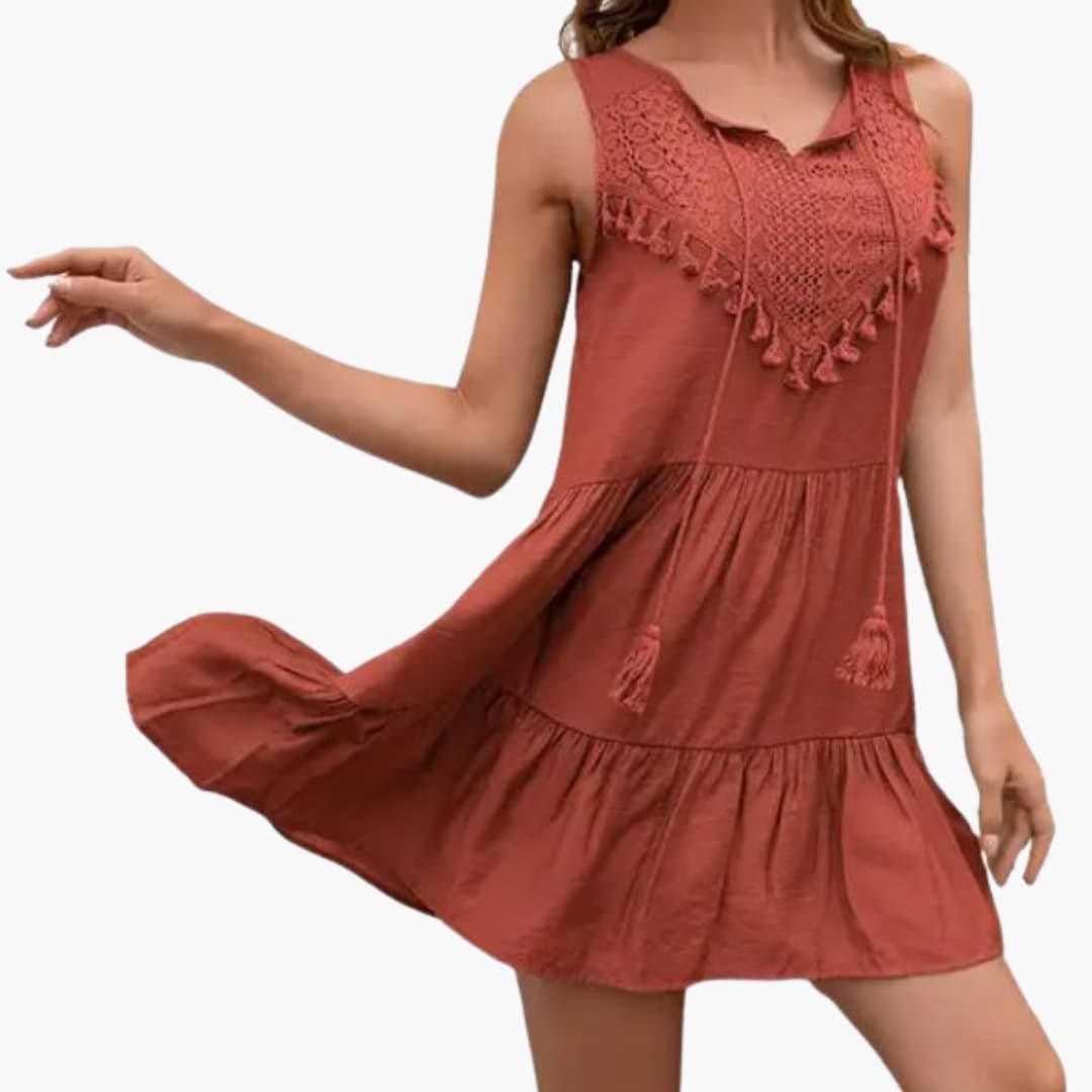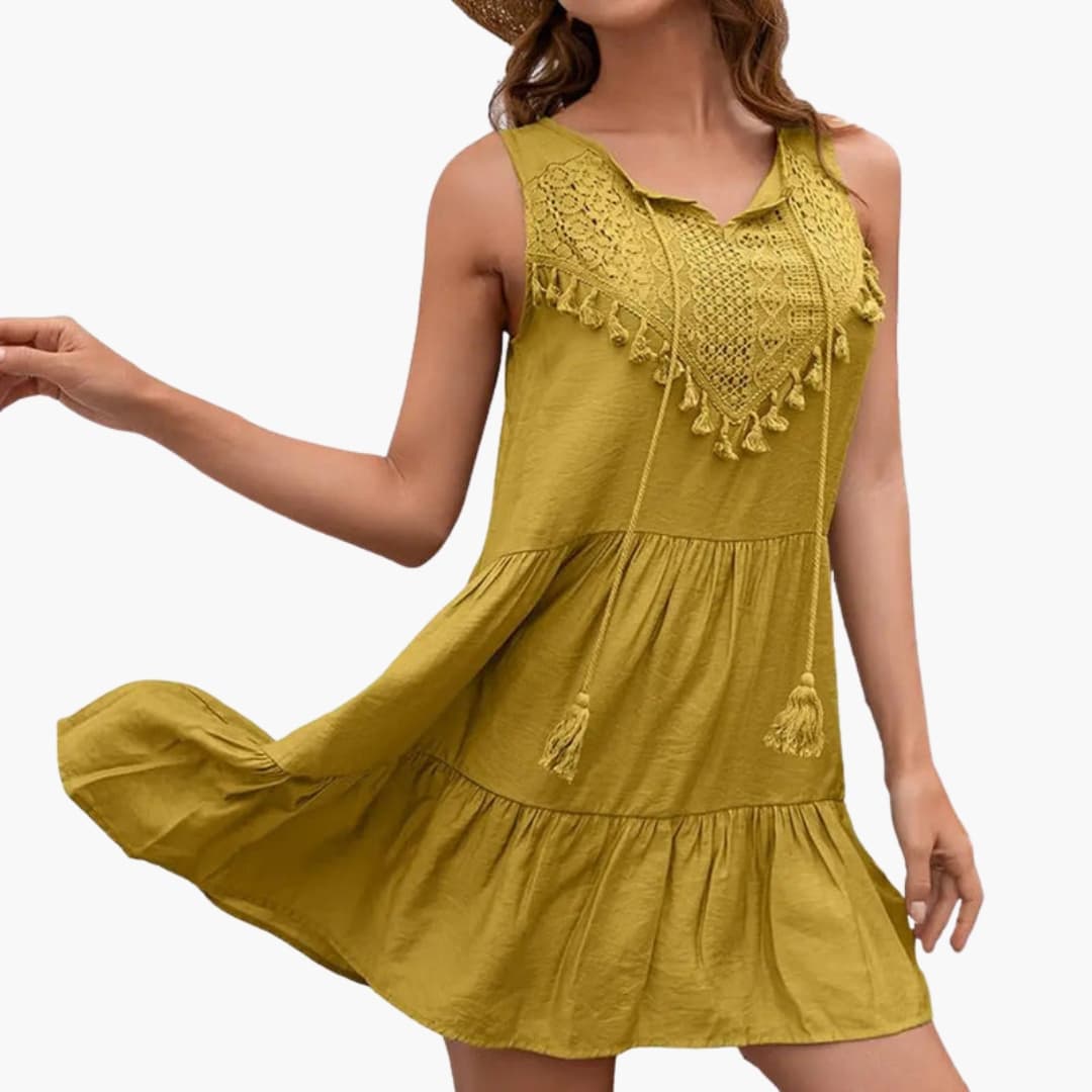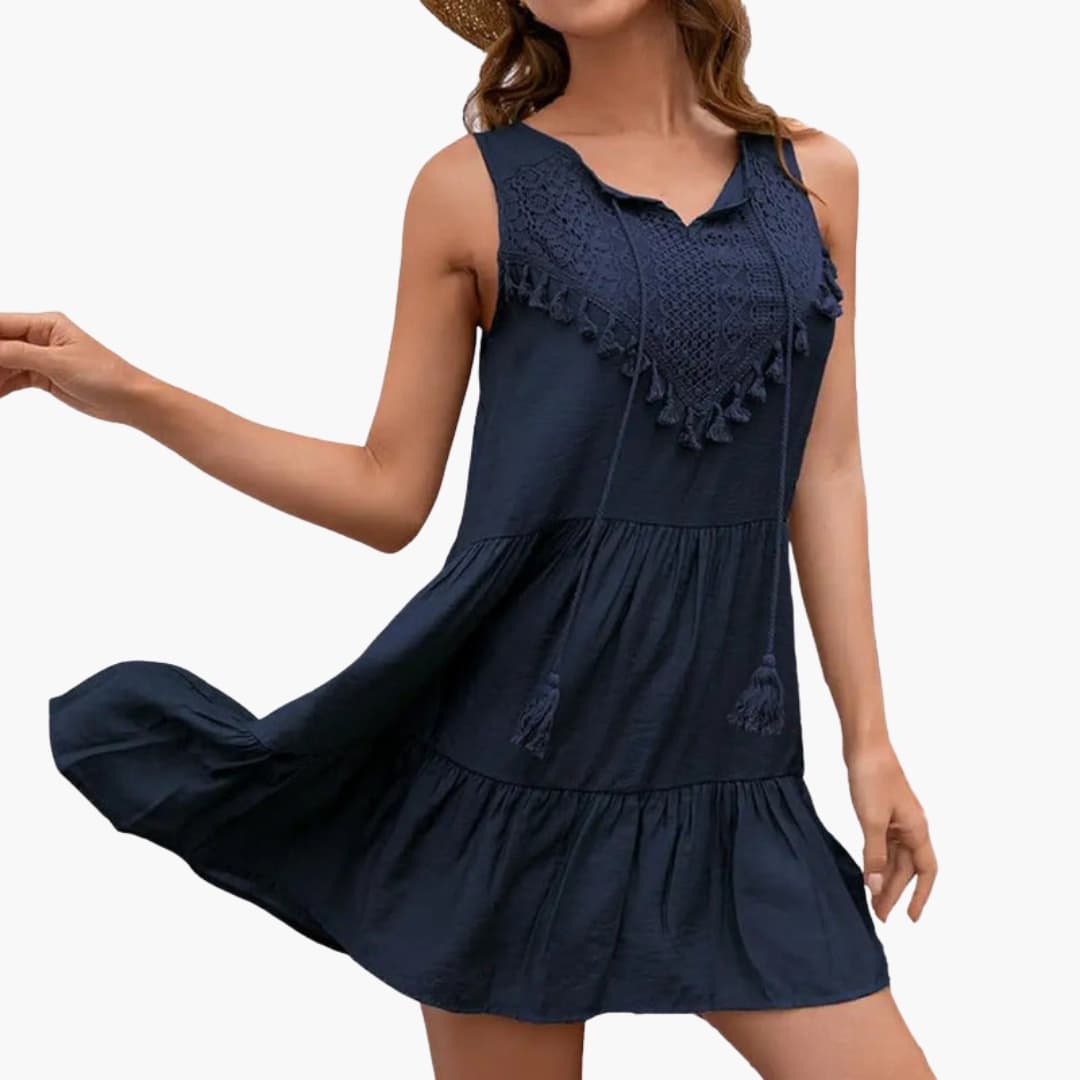 Women’s Midi Dress with Fitted Bodice and Side Pockets
