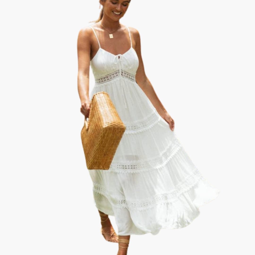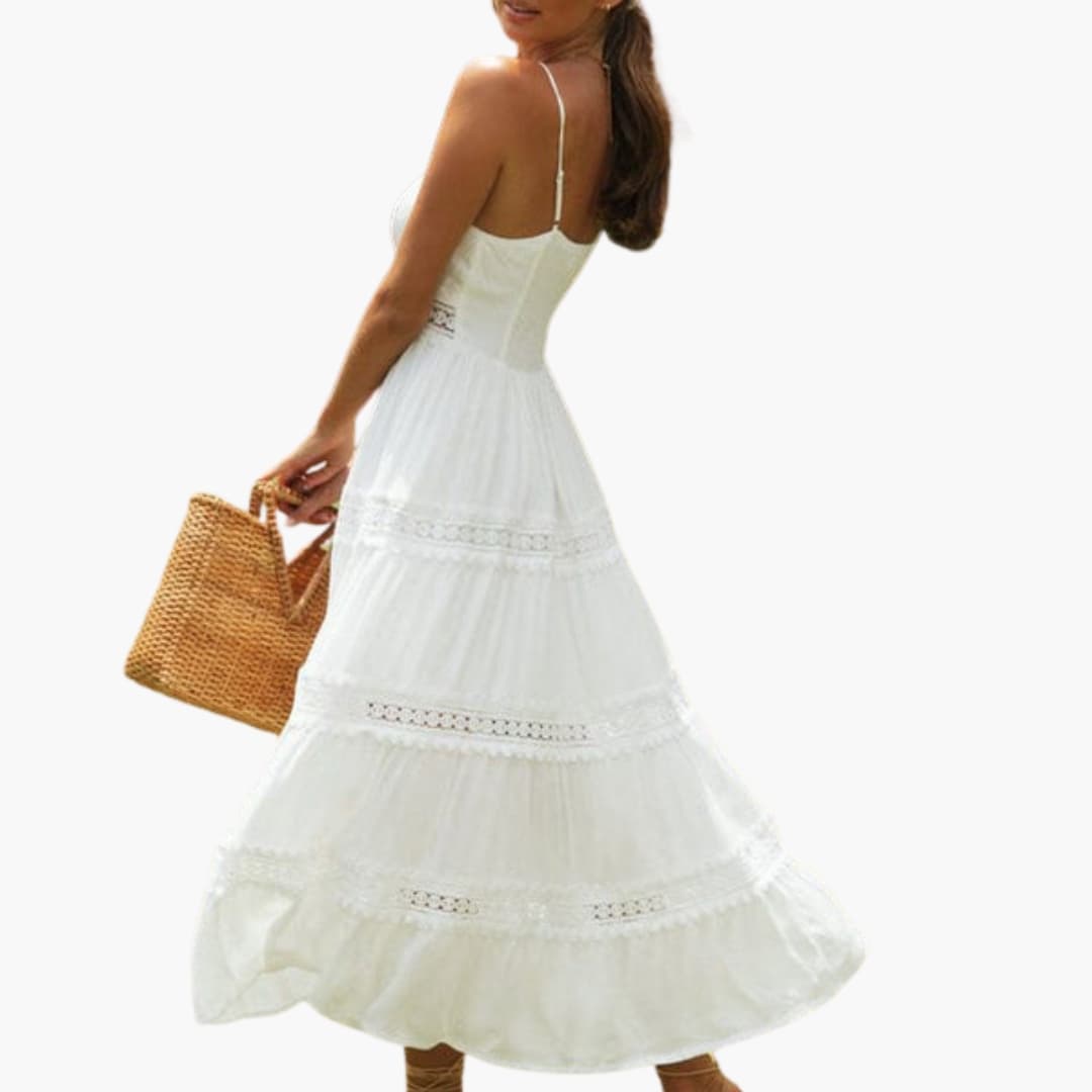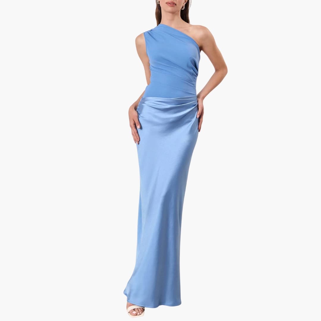 - Surface Finish: Satin surface presents a smooth texture across the entire dress fabric.