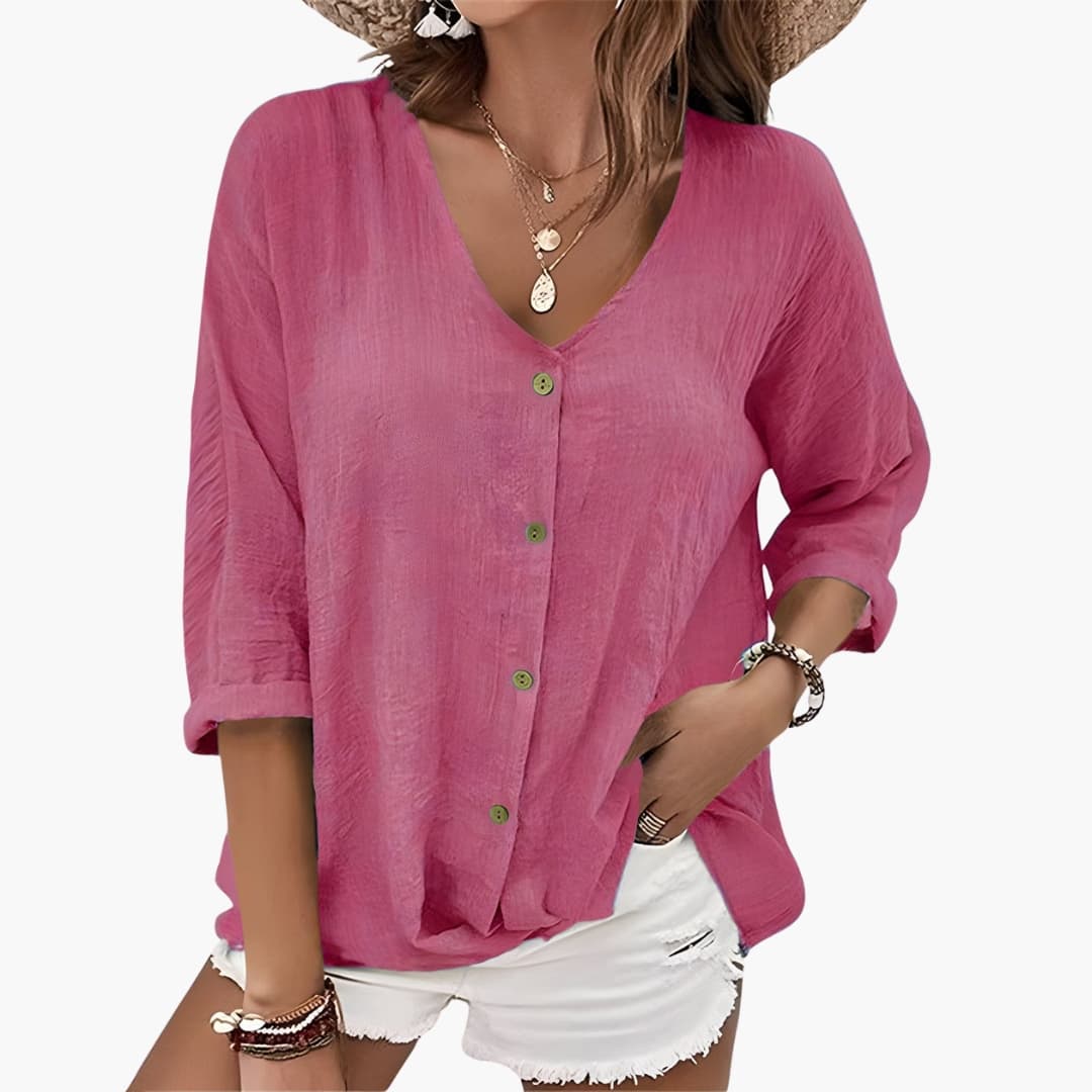 Women’s Button-Down Blouse with Scalloped Collar and Long Sleeves