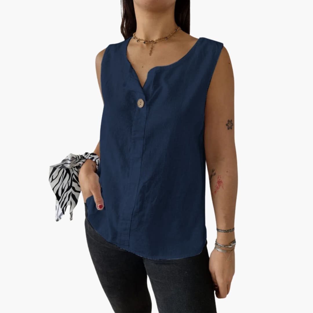 Women’s Sleeveless Blouse with Button Details and Hip-Length Cut