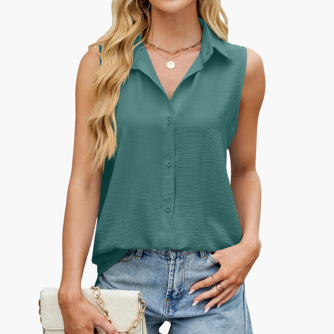 Sleeveless women’s blouse with a collar and front button fastening