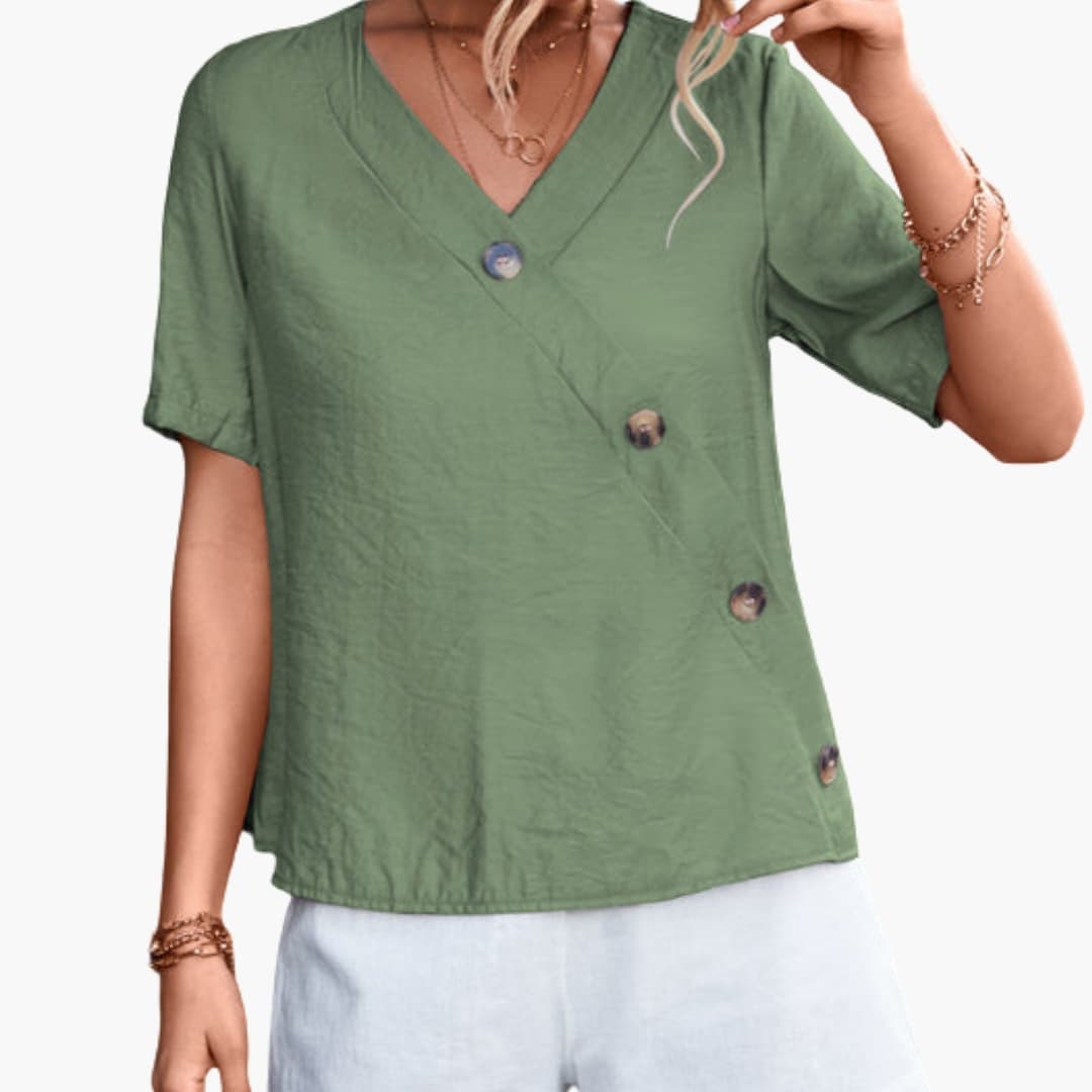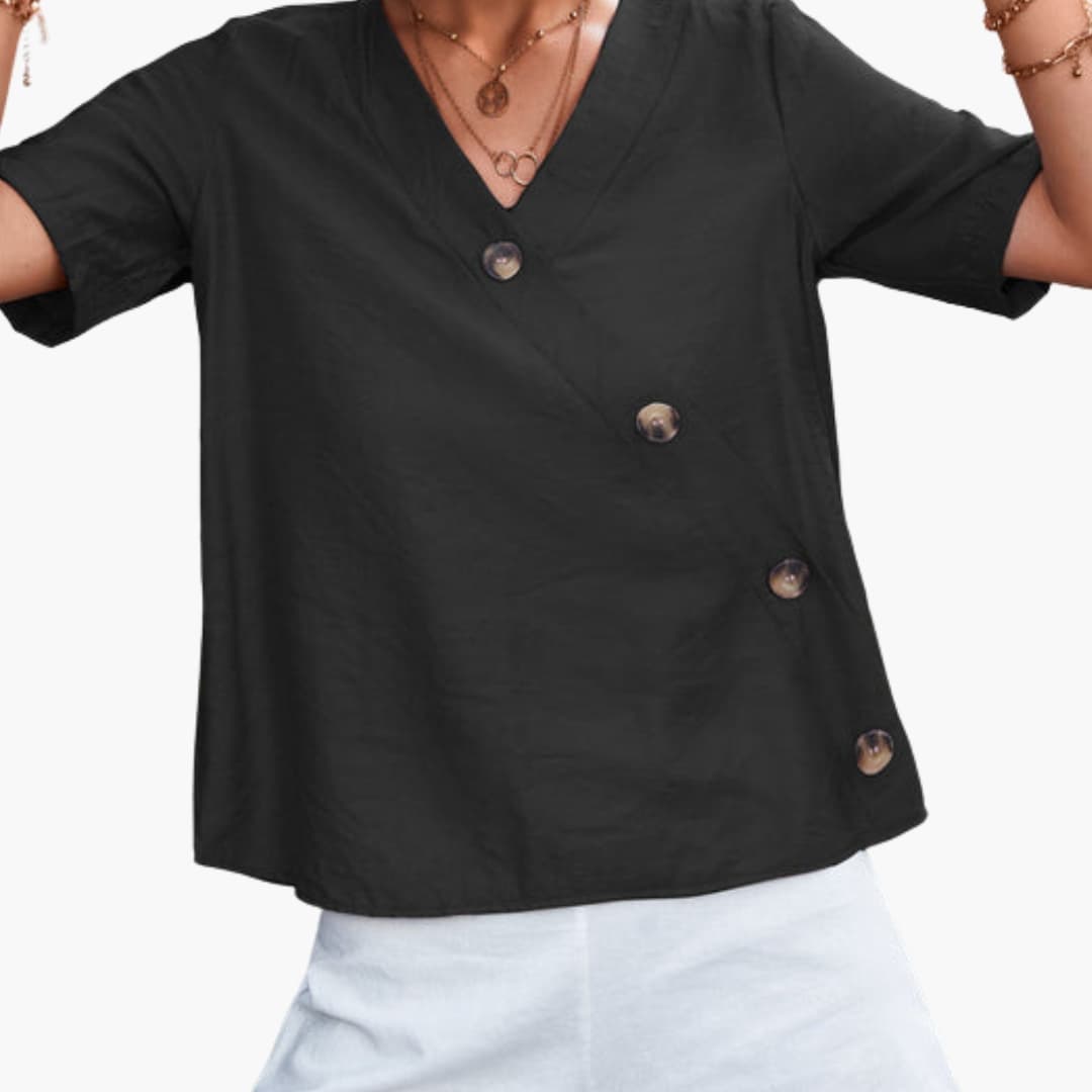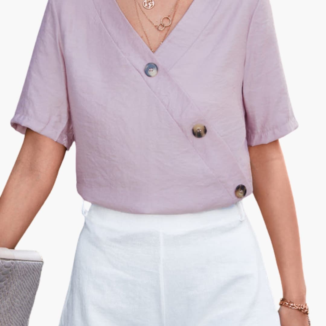 Women's Wrap Front Blouse with Button Details and Short Sleeves